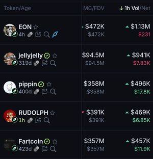 Топові монети Pumpfun за останню 1 годину за обсягом: $Eon $Jellyjelly $Pippin $Rudolph $Fartcoin 🤖: